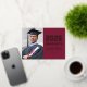 Elegante y moderno Relieve metalizado de oro personalizado graduación gracias nota las tarjetas se pueden personalizar con la foto del graduado, el nombre y la escuela. Se puede modificar el color de fondo rojo Borgoña. Personalizar para agregar un mensaje de agradecimiento al personalizado o escribir una nota manuscrita dentro de la tarjeta.