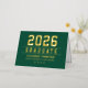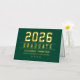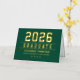 Elegante y moderno Relieve metalizado de oro personalizado graduación gracias nota las tarjetas pueden ser personalizadas con el nombre del graduado y la escuela. Se puede modificar el color de fondo verde. Personalizar para agregar un mensaje de agradecimiento al personalizado o escribir una nota manuscrita dentro de la tarjeta.