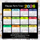 Calendario 2026 sobre la moderna tarjeta magnética del calendario empresarial de calendario de negocios simple y negro con el colorido calendario 2026. Todos los textos están preorganizados para que puedas personalizarlos fácil y rápidamente con tus propios detalles.