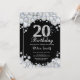 Invitación al cumpleaños 20. Fondo del tablero del diamante Diamante de imitación plateado. Elegante invitación de Bash de cumpleaños. Blanco y negro. Cumpleaños de adultos. Cumpleaños de las mujeres. Cumpleaños de los hombres. Para una mayor personalización, haga clic en el botón "Personalizar" y utilice nuestra herramienta de diseño para modificar esta plantilla.