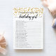 Compra este juego de temas de viajes editable y disfruta de la tarjeta de Chica de alta calidad 20 Preguntas sobre el Cumpleaños para tu evento! Esta es una plantilla de juego, ¡Puedes cambiar las preguntas como quieras! Diseño de confeti dorado.