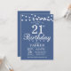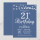 Invitación de cumpleaños 21 con String Lights. Fondo Azul. Invitar a los hombres o a las mujeres que eligen el cumpleaños elegante. 13.º 15.º 16.º 18.º 20.21.30.40.50.60.70.80.90.100, cualquier edad. Para una mayor personalización, haga clic en el botón "Personalizar" y utilice nuestra herramienta de diseño para modificar esta plantilla.