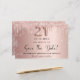 Una chica y de moda Guardar la tarjeta de fecha para un fiesta de 21 años. Fondo Subió de gradiente dorado decorado con oro rosa y tonalidades de plata y polvo. Personalice y agregue una fecha y un nombre/texto. El texto: Save the Date se escribe con un gran guión de estilo escrito a mano. Número 21 con un tipo de letra de estilo globo.