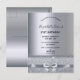 Una invitación moderna, elegante y glamurosa para una joven fiesta de 21 años. Un falso fondo metálico plateado con un elegante arco falso plateado, cinta adhesiva y brillo. El nombre está escrito con un guión moderno de estilo con letras de color negro. Plantillas para los detalles del fiesta. Sugerencia: Si no desea que se vea como una postal, haga clic en personalizar, vaya a la parte posterior y quite el separador y el sello postal.