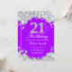 Invitación al cumpleaños 21. Diamante Diamante de imitación morado y plateado. Elegante invitación de Bash de cumpleaños. Cumpleaños de adultos. Cumpleaños de las mujeres. Cumpleaños de los hombres. Para una mayor personalización, haga clic en el botón "Personalizar" y utilice nuestra herramienta de diseño para modificar esta plantilla.