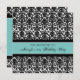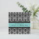 21ras invitaciones de la fiesta de cumpleaños del personalizado en las azules turquesas elegantes, modelo floral clásico blanco y negro del damasco. Añada su nombre y vaya de fiesta los detalles para una 21ra invitación única y elegante de la fiesta de cumpleaños.