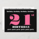 Este diseño contemporáneo una manera de la diversión de invitar a la gente a una 21ra celebración del cumpleaños. Todo el texto es adaptable. Usted puede experimentar con diversos tipos de papel haciendo clic en "la etiqueta de las opciones de la invitación" en la esquina derecha superior. Recomiendo este diseño en un papel metálico hued del hielo que dé a su invitación un reflejo y un brillo festivos.
