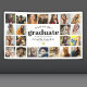 Banner de graduación de clase 2023 con un fondo blanco simple que se puede cambiar a cualquier color, una plantilla de collage de 22 fotos para que puedas personalizar con tus propias imágenes y una plantilla de texto moderna que puedas personalizar.
