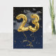 Globos dorados milares, cintas y confeti dorado en un cielo negro y azul gradiente con nubes por 23 años.