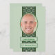 Invitación a la fiesta de cumpleaños número 25. Una invitación muy elegante para una fiesta de cumpleaños que es apropiada para un hombre o una mujer. Un borde con estampado verde marca la imagen de la persona de cumpleaños. Añade su nombre bajo la imagen y tienes una invitación muy única.
