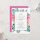 Estas invitaciones para el 25º aniversario del boda cuentan con flores tropicales y hojas de palma en tonos rosa, naranja y verde. Utilice los campos de plantilla para agregar los detalles del personalizado. Solicite tarjetas impresas o invitaciones imprimibles. Una elección elegante para un Luau hawaiano y temas tropicales. Para ver más diseños como este visite www.zazzle.com/dotellabelle Arte y diseño de acuarelas únicas de Victoria Grigaliunas de Do Tell A Belle.
