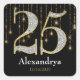 pegatinas de etiquetas de favores de 25 años, con un número de diamante y oro con hilos brillantes de luz, personalizados con nombre y fecha a continuación.