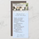 Esta tarjeta de programa 4x9 de boda es perfecta para que cualquier pareja pueda regalar en la entrada de su ceremonia para que sus invitados sepan qué canciones se tocarán y el orden de los eventos de la ceremonia. Estos vienen con sobres blancos estándar, pero puedes descartarlos o guardarlos y usar los sobres con los programas y vestir el exterior del sobre con flores, purpurina, cinta, etc. El diseño y la disposición de Jennifer se acreditan con diseños coloridos. Tenemos una línea entera dedicada a este diseño aquí en el zazzle store bajo la pestaña * Diseño Colecciones del menú para incluir invitaciones (5x7), Etiquetas de retorno, Etiquetas de correo, Sellos para sobres, estampillas de rehenes, Tartas de copas, Envolturas de botellas de agua, Hershey's 1.55 oz. Envolturas para barra grande, Pegatinas en miniatura de Hershey, Envolturas para bolsitas de palomitas de microondas, Tarjetas para lugares escribibles, Toppers para bolsitas de goody, Tarjetas de agradecimiento FLAT (4x5), Tarjetas de agradecimiento FOLDED (4x5), Etiquetas de favoritos, Tarjetas de menú, libros de papel, Tapas de ligas, Tarjeta de bingo Marcadores, Hojas de llamadas con tarjeta de bingo, tarjetas de consejo para escritura (4x5), etc.