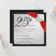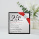 Invitaciones Elegantes de Plata y Negro para Fiesta de Aniversario de 25 Años con cinta roja simulada y corazón de strass -- Personalice el nombre, fecha y detalles para esta feliz ocasión. **NOTA: Tamaño para tarjetas de invitación CUADRADAS. Tarjetas de agradecimiento y franqueo a juego disponibles. FRANQUEO EXTRA REQUERIDO EN INVITACIONES CUADRADAS.