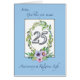 Regocijarse con una monja católica que celebra su 25 aniversario en la vida religiosa. El plateado número 25 de aspecto tridimensional está en el centro de la tarjeta. una corona de hojas y ramas la rodea con flores en la parte inferior.