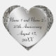 Cambia fácilmente a tu propio texto sobre estos elegantes pegatinas plateados con un aspecto 3d en el fondo brillante de la secuencia impresa en plata en un pegatina de forma cardíaca. Gran favor partidario y también sellos para sobres. Se muestran los nombres de la pareja y el 25 aniversario con la fecha en un guión elegante. Cambie a sus nombres personalizados y fecha fácilmente. También es agradable para fiestas, ocasiones especiales y grandes eventos como un compromiso o un boda.