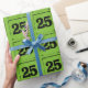 Papel de embalaje de vacaciones con texto negro de baldosas que dice simplemente 25 para representar la fecha, 25 de diciembre, ¡Navidades! Puede personalizar el fondo verde para que sea el color que desee.