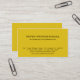 Esta elegante tarjeta de presentación muestra sus informaciones de forma limpia y profesional utilizando una moderna fuente negra en un fondo dorado amarillo. Este diseño es adecuado para todos los propósitos. Las tarjetas de visita son una gran herramienta de marketing para los empresarios y pequeños empresarios para promover sus servicios o productos en muchos campos de actividad como educación, consultoría, finanzas, seguros, bienes raíces, salud, belleza, fitness, estilo de vida, auto, TI, computadoras y muchos más. En esta moderna y elegante tarjeta de visita el nombre y las líneas de información empresarial se acentúan con una sutil sombra. Puede elegir su propio fondo o color de fuente y también puede cambiar el color de la sombra personalizando el diseño con las herramientas de diseño de Zazzles. Personalizar el texto en la parte posterior de la tarjeta para informar a los clientes y socios comerciales sobre su servicio o productos o eliminar campos de texto que no necesite. Si esta tarjeta de visita está destinada para uso privado, es posible que no desee entregar demasiadas informaciones para proteger su seguridad. En este funda puedes usar la parte delantera de la tarjeta para imprimir tu nombre e información de correo electrónico en ella y escribir tu número de teléfono en la parte posterior de la tarjeta cuando la entregues. Muestre su profesionalidad a los clientes y amigos y haga una impresión duradera eligiendo las impresiones profesionales de tarjetas de visita Zazzles.