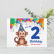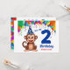 Diseño único - Invitación a la fiesta de cumpleaños con tema de mono con un mono lindo y el texto "Es mi segundo cumpleaños" con un gran número 2. Personalizable con el nombre de su hijo. ¡Feliz cumpleaños!