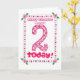Tarjeta de cumpleaños de bonito para una Prima de dos años, con un diseño floral de bonito en tonos rosa y verde, hecha de un collage de papel pintado a mano de Judy Adamson.