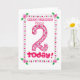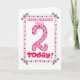 Tarjeta de cumpleaños de bonito para una sobrina de dos años, con un diseño floral de bonito en tonos rosa y verde, hecha de un collage de papel pintado a mano de Judy Adamson.