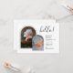 Hola Anuncio de nacimiento de bebé con varias fotos de Arco a mano puede cambiar completamente con los detalles de su bebé o gemelos haciendo clic en el enlace "Personalizar esta plantilla" de arriba. Cambiar el color de fondo del reverso para que coincida con el fondo de las fotos delanteras
