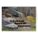 2 Corintios 5:7 - Porque caminamos por la fe, y no por la vista. La escena es de un bosque rocoso al aire libre.