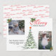Difunde la alegría navideña con nuestra tarjeta de Navidad personalizada con collage de 2 fotos, diseñada para capturar el espíritu de la temporada. La parte delantera presenta un encantador árbol de Navidad en acuarela adornado con una estrella roja vibrante y delicadas agujas de pino, que encarna perfectamente la atmósfera festiva. La tarjeta muestra de manera prominente "Feliz Navidad", junto con el nombre de su familia y el año, lo que la convierte en un recuerdo especial para los años venideros. En la parte trasera, las palabras emotivas "Feliz Navidad" continúan el tema alegre. Esta tarjeta única no es solo un saludo, sino una hermosa manera de compartir el amor y el calor de su familia con amigos y seres queridos durante la temporada navideña.