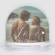 Capture the holiday magic with this personalized snow globe, featuring a white, elegant script font 'Love' with a heart image at the end, an option to add the couple's names and two personal Photos (one int the front and one in the back). This is a timeless keepsake that brings your favorite memories to life.