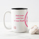 Taza de café personalizada de 444ml. ¡En cuanto a tamaño sólo puedo decir que enorme! pero es lo que esperaba así que estupendo. En el asa me entra la mano entera y no sólo tres dedos como me ocurría con las otras tazas. También comentar que es el tamaño que se ve en las series americanas, tanto para café como para infusión. En cuanto al acabado decir que es correcto, con poco tiempo de uso no puedo especificar mucho más. Pude escoger el nombre y el color pero no la tipografía, quizás esa elección pueda decidir a más gente. En términos generales y por el momento, buena opinión.