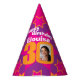 El patrón de estrella brillante agrega tu propia foto y nombre de gorra fiesta. Ideal para una celebración especial de fiestas de cumpleaños número 30 para damas. Colorido diseño rosa, naranja y amarillo para los 30 años. El color de fondo también se puede cambiar para su elección actual de amarillo. Arte y diseño originales de Sarah Trett. www.sarahtrett.com para www.mylittleeden.com