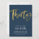 Invitación de cumpleaños de la Marina Treinta, Blanco y Faux Gold con un estilo de letra de guión moderno. Una simple y divertida invitación de cumpleaños para tu fiesta de 30 años.