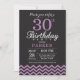 Invitación de cumpleaños 30 con Chevron negro y púrpura. Pizarra. Cumpleaños de adultos. Invitación de cumpleaños de hombre o mujer. Para una mayor personalización, haga clic en el botón "Personalizar" y utilice nuestra herramienta de diseño para modificar esta plantilla.