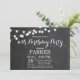 Invitación de cumpleaños número 30 con fondo de tablero de anuncios con luces de cadena. 13.º 15.º 16.º 18.º 21.30.40.50.60.70.80.90.100, Cualquier edad. Para una mayor personalización, haga clic en el botón "Personalizar" y utilice nuestra herramienta de diseño para modificar esta plantilla.