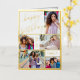 Tarjeta de cumpleaños de lujo de Relieve metalizado dorado que puedes personalizar con un nombre, cualquier edad y 5 fotos en la parte delantera, así como un saludo de cumpleaños personalizado en el interior. La plantilla de fotos se configura para crear automáticamente un collage de fotos de retrato vertical, horizontal y cuadrado de imágenes. Si tiene algún problema con la ubicación de la imagen, puede recortar la foto a la forma derecha y volver a subir o puede hacer clic en "editar usando la herramienta de diseño", luego haga clic en la foto que le da el problema y usar el botón "recortar" para reubicarla.