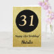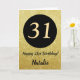 31ª Tarjeta Purpurina Feliz Cumpleaños Negra y Oro con nombre personalizado. Para una mayor personalización, haga clic en el botón "Personalizar" y utilice nuestra herramienta de diseño para modificar esta plantilla.
