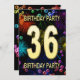 Agregue un nombre al personalizar para esta invitación de grupo única. Invitación a la fiesta de cumpleaños número 36 con fuegos artificiales y burbujas. Añade tus detalles al interior para crear una invitación de diversión perfecta. Enciende el cielo con estos gloriosos fuegos artificiales. Una invitación a una fiesta de cumpleaños que tiene estilo y mucha diversión.