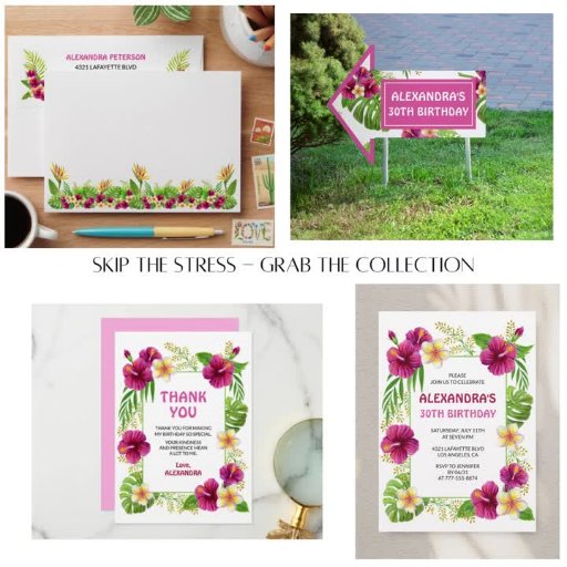 38.ª invitación al Fiesta tropical Luau Pink hibiscus