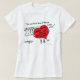 La camisa muestra un cómico de Christina Swanson, de una mujer en una tienda de ropa que soporta un corazón rojo gigante, blasonado con los rasgos de carácter deseados enumerados en el 3:12 de Colossians. en frente ella, pidiendo "usted tiene de éstos en mi tamaño?"