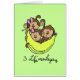 Tres pequeños monos adorables cuelgan hacia fuera en la curva de un plátano amarillo grande en 3 camisetas de los monos de Li'l, monos, tarjetas, pegatinas, las bolsas de asas, y otros artículos de la ropa y del regalo del mono.