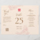 Esta es una tarjeta 3 en 1 con número de tabla, menú y nota de agradecimiento. Este diseño se imprimirá sin línea de puntuación. Por favor, doble la tarjeta utilizando las líneas de puntuación en la parte posterior o en base a la medida mostrada en la imagen.