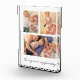 Crea tu propio bloque de fotos acrílicas personalizado con un collage de 3 de tus fotos familiares favoritas. El texto del personalizable dice: "Nuestra creciente familia"