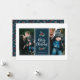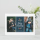 Estas elegantes tarjetas de fotos navideñas cuentan con tres plantillas de fotos: dos en la parte delantera y una centrada en la parte trasera. El centro del bloque de color de la parte delantera (mostrado en azul verde azulado profundo) se puede personalizar a cualquier color que desee. Los elementos de diseño incluyen la lectura moderna de tipografía, "Feliz Navidad" y dos arreglos de bayas y hojas. La parte posterior de la tarjeta contiene un patrón de bayas huecas sobre un fondo azul coincidente detrás de una plantilla de foto enmarcada en blanco. Para consultas de diseño o productos, por favor contacte conmigo (Tracey) en orabellaprints@outlook.com.