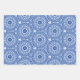 conjunto de 3 hojas de envoltura de regalo azul y blanco con patrones de diseño circular