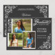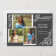 © Socialite Designs. Nuestra elegante invitación de graduación tiene tres fotografías en capas (funciona mejor con 3" x 5", 5"x7", etc.) y elegantes esquinas florecen en blanco con un fondo gris. La parte delantera incluye un texto de graduación de swirls que proporciona una elegancia sofisticada pero simple a esta invitación. La parte posterior tiene la información del evento y un color de fondo gris oscuro que puede cambiar personalizando. Los marcos fotográficos y los giros de esquina pueden ser redimensionados, rotados, movidos o borrados individualmente para que se adapten a su gusto. Si necesita cambios, no dude en ponerse en contacto con los Diseños de Socialite.