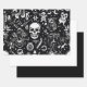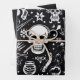 Hojas de papel de envolvimiento de 19" x 29", mate de 19" x 29", 3pc. Impresión de cráneo en blanco y negro, negro, blanco