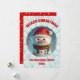 Tarjeta de Navidad de muñeco de nieve 3D. Cuenta con un muñeco de nieve festivo con tipografía de color rojo oscuro y color de fondo.