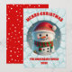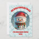 Tarjeta de Navidad de muñeco de nieve 3D. Características festivas de muñeco de nieve navideño con tipografía de color rojo oscuro y color de fondo.