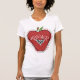 Una camisa para los terceros profesores del grado que ofrecen un ilustracion de una manzana roja adornada con un corazón negro con los lunares blancos y el texto blanco que dice, "PROFESOR." "3ro grado rojo y negro, tercer grado…" el texto rodea la manzana.