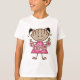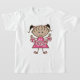 ¡Una niña adorable en coletas y un vestido rosado sostiene una cadena de letras que expliquen "TRES" en las 3ro camisetas del cumpleaños, las tarjetas, los pegatinas, los bolsos, y mucho más!